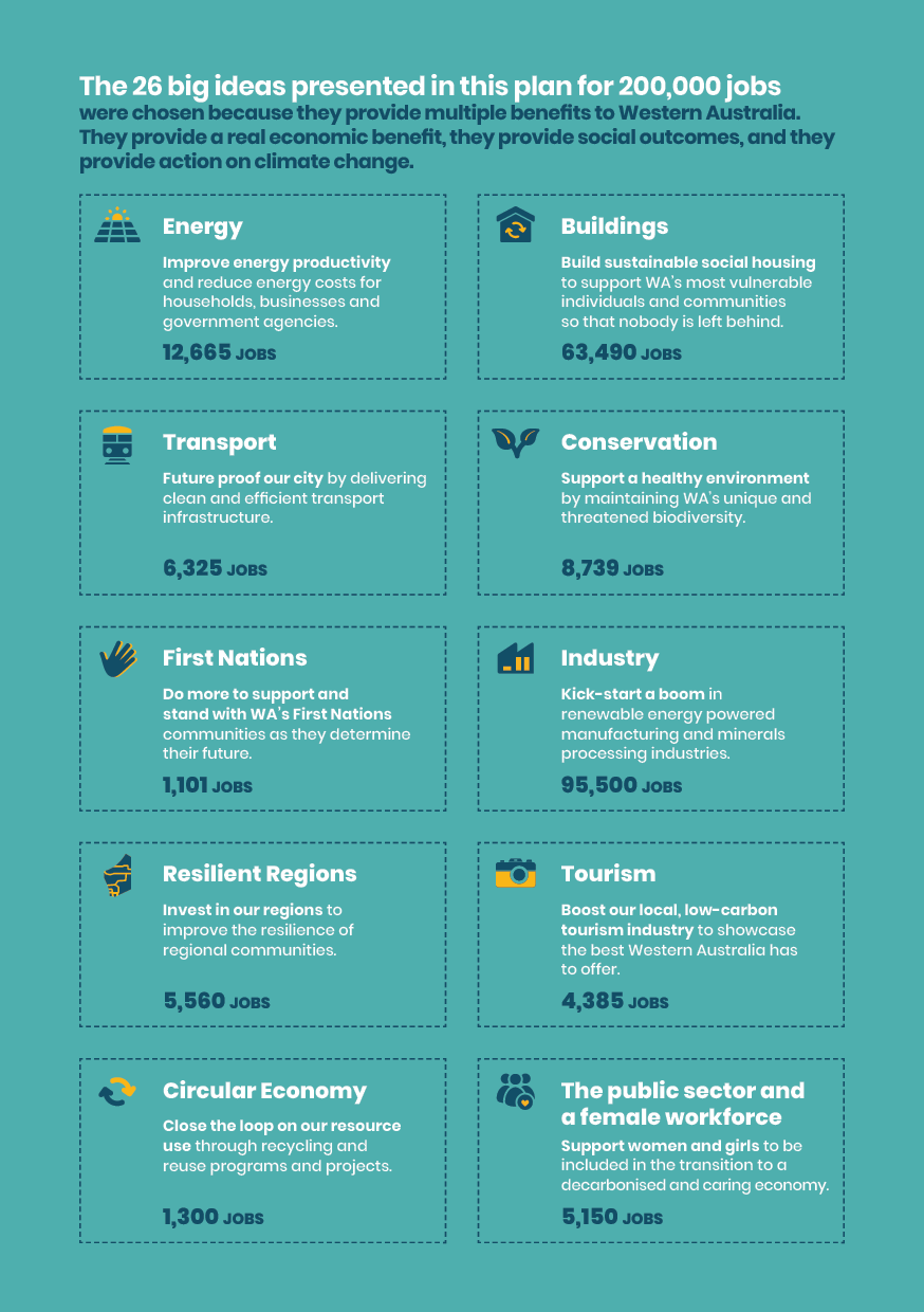 There has never been a more important time for WA to have a plan for jobs. The impact of the COVID-19 pandemic has been significant and is likely to be felt across our community for years to come. To reboot our economy, and build back better, we need to have a plan. A plan that puts people and the planet at the centre.